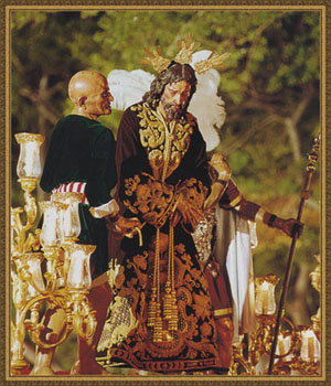ciudad. En un primer “Trono” se escenifica el momento en el que Señor, Orando en el Huerto, reza ante Dios Padre y es consolado por el Arcángel San