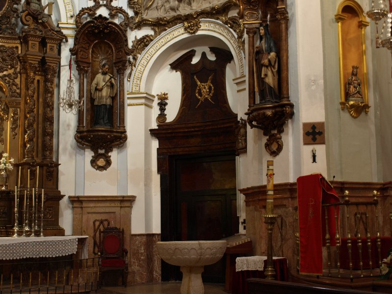 - Justo enfrente, en el otro lado, junto a la puerta de la Sacristía, encontramos el altar que alberga la imagen de la Virgen de las