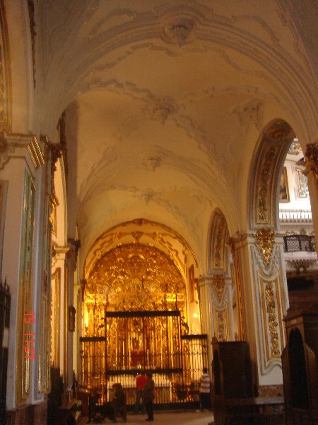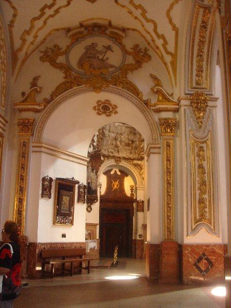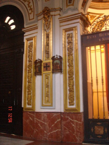 Tras ella se abre un pequeño vestíbulo cubierto con bovedilla muy alargada prodigándose la decoración rococó en el calado
