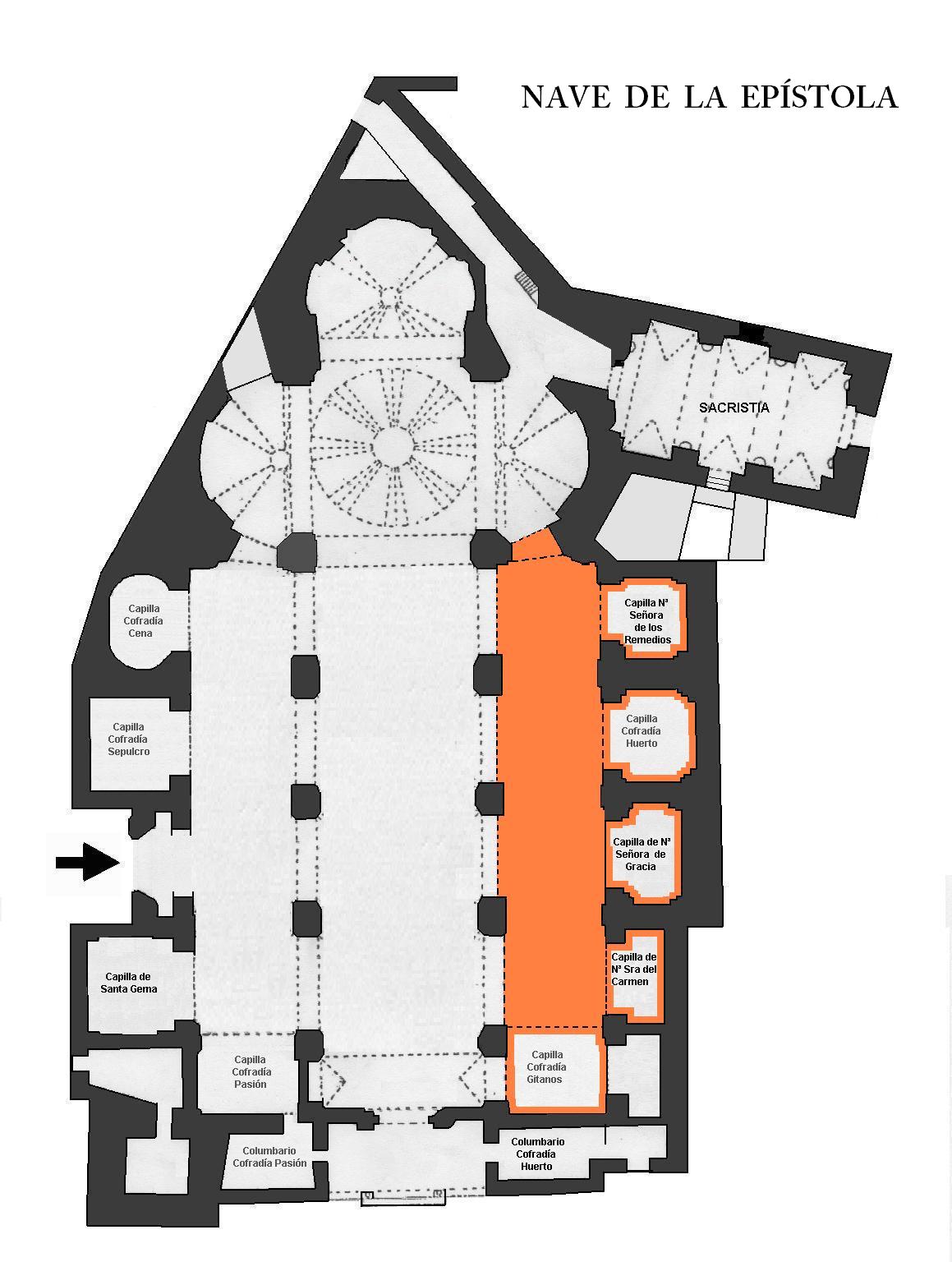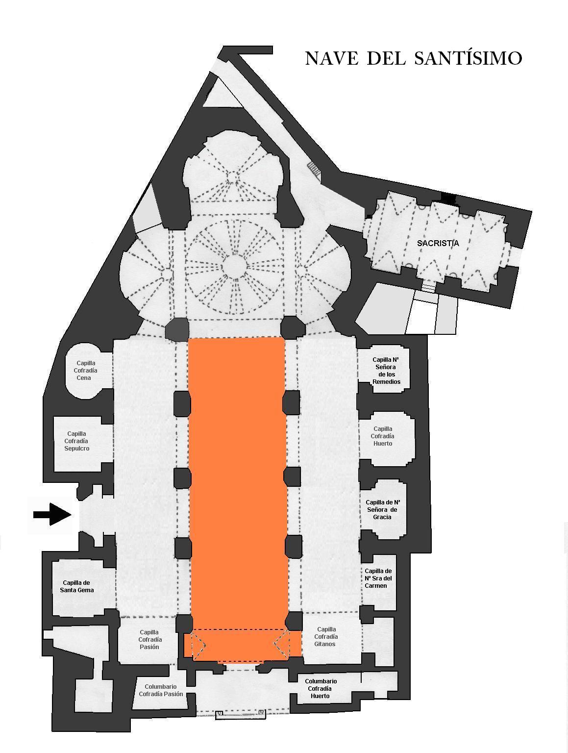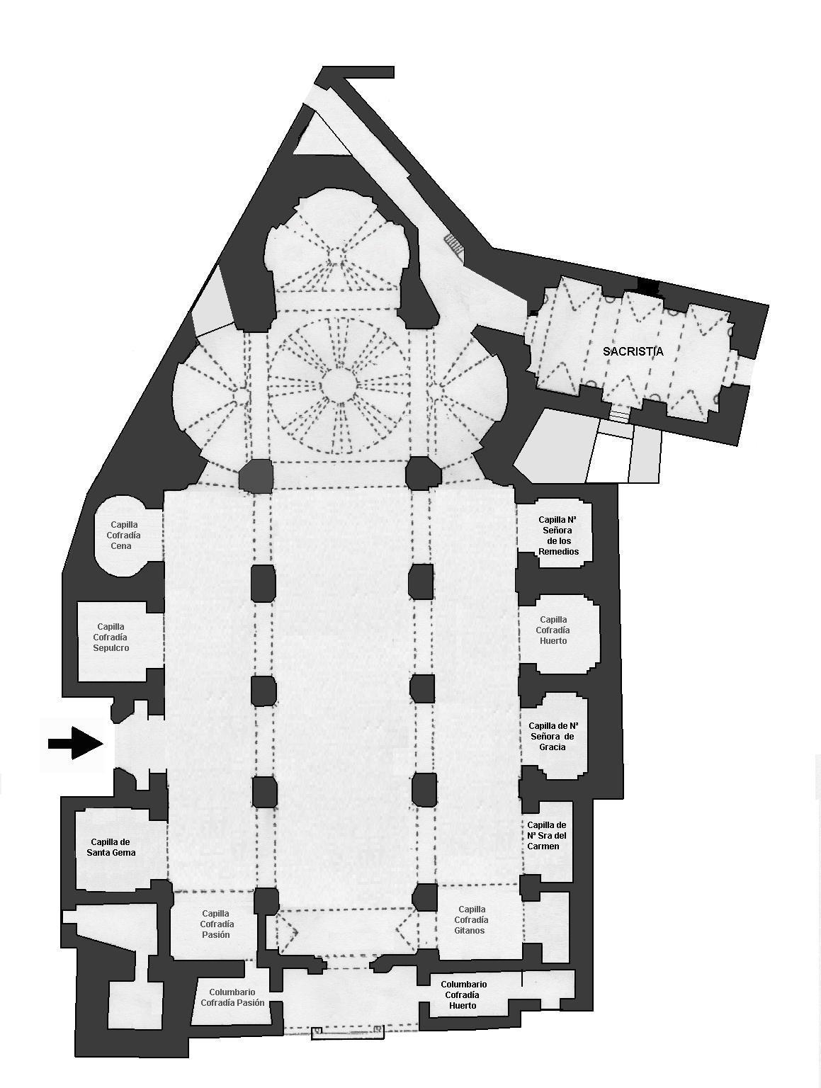 fluviales subterráneas, suelo arcilloso, etc.…), poco adecuada para una edificación de este porte. La iglesia parroquial de los Santos Mártires responde a una planta que