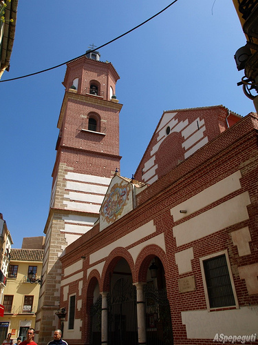 de la Plaza de los Mártires con la calle Mártires la torre cuadrada que inicialmente construyera el maestro Bartolomé Pérez en 1.548.